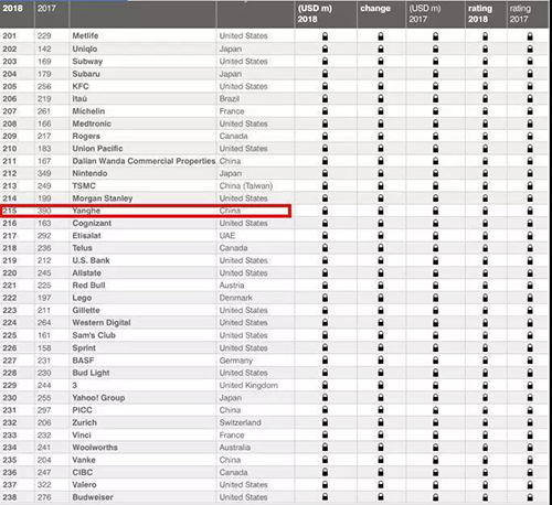 洋河再次入選全球品牌價值500強,比去年提升175位