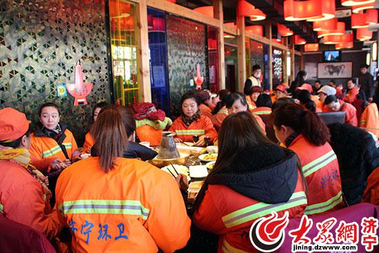 濟(jì)寧百余名環(huán)衛(wèi)工人免費(fèi)吃火鍋 感受舌尖上的“溫暖”