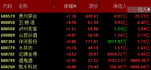 白酒板塊將進(jìn)入估值切換行情 40億資金狂涌貴州茅臺等7股