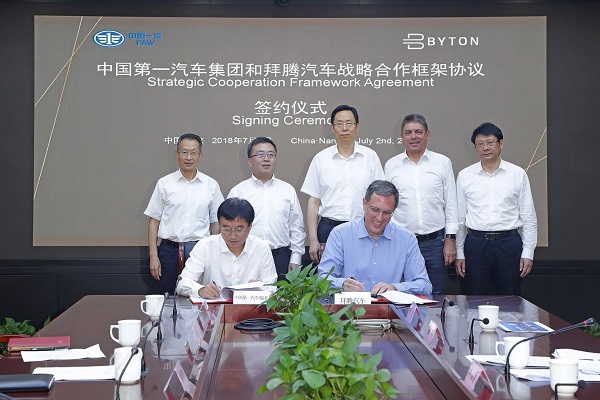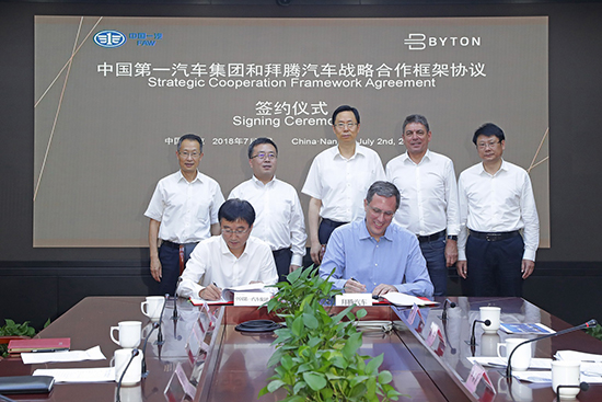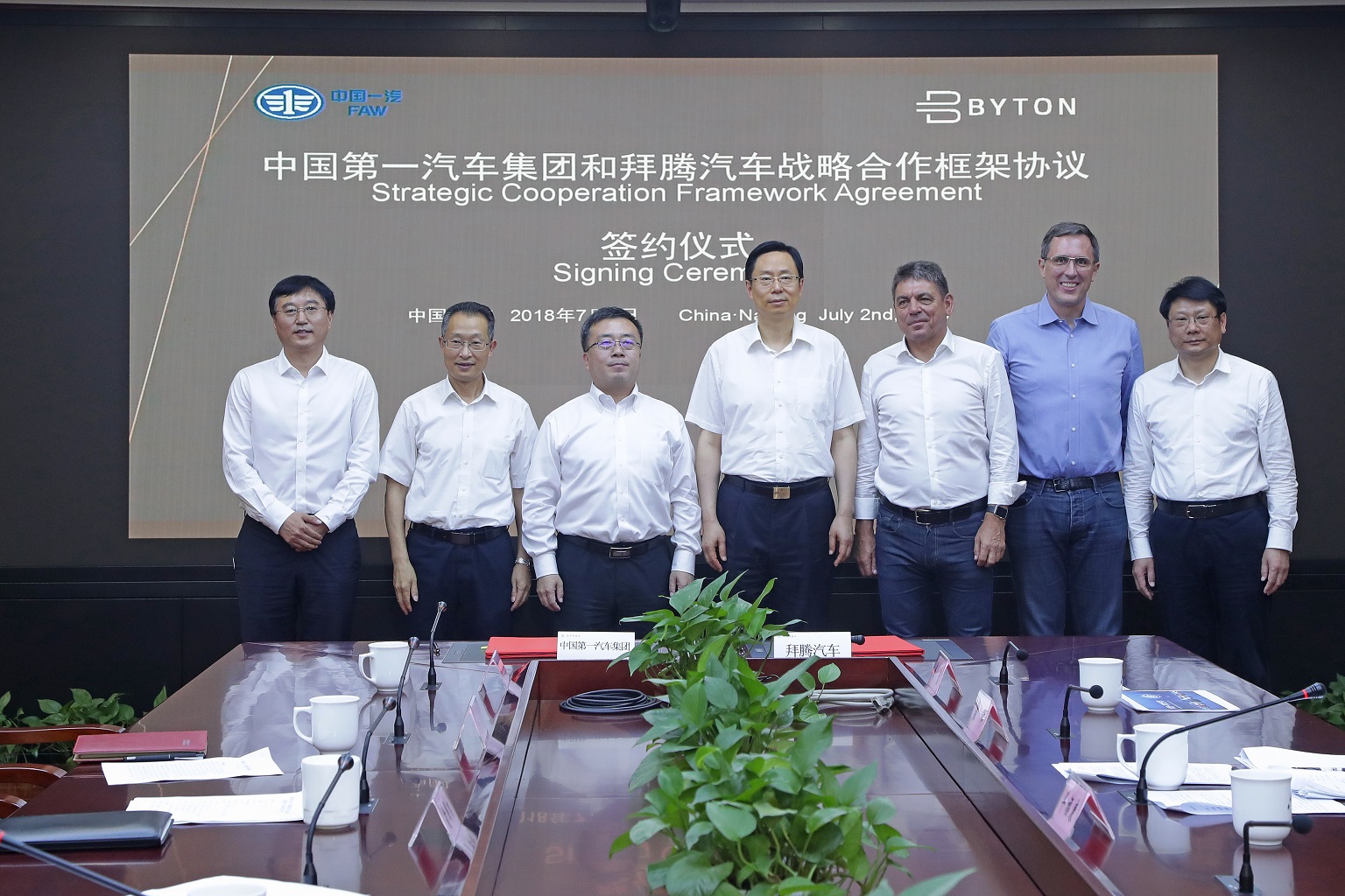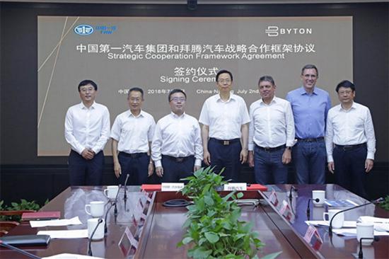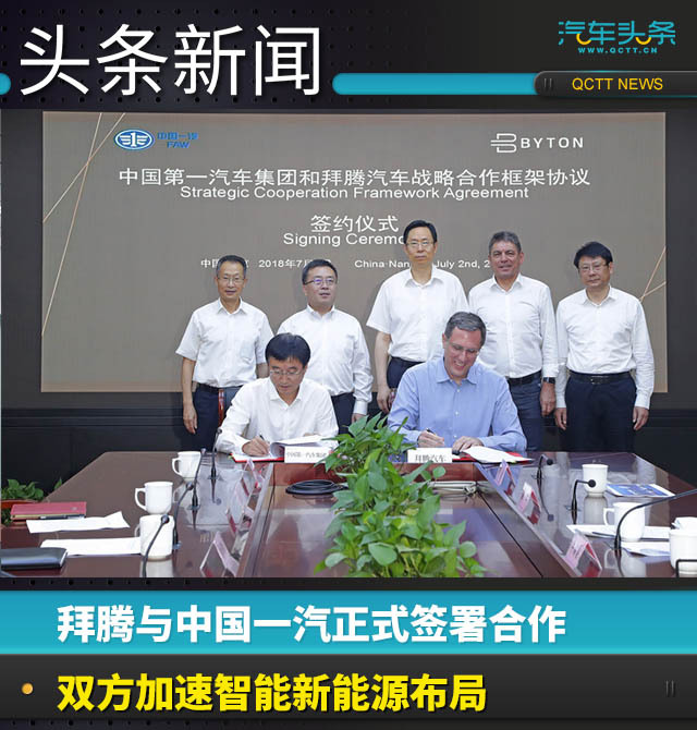 原標(biāo)題:拜騰與中國(guó)一汽簽署戰(zhàn)略合作框架協(xié)議2018年7月2日,智能豪華電動(dòng)汽車企業(yè)拜騰與中國(guó)第一汽車集團(tuán)有限公司在南京簽署了戰(zhàn)略合作框架協(xié)議,雙方將充分發(fā)揮產(chǎn)業(yè)協(xié)同作用,在平臺(tái)技術(shù)、投資入股、零部件采購(gòu)等方面開展一系列合作。拜騰總裁兼聯(lián)合創(chuàng)始人戴雷博士與中國(guó)一汽總經(jīng)理助理、產(chǎn)品規(guī)劃及項(xiàng)目管理部部長(zhǎng)梁貴友簽署戰(zhàn)略合作框架協(xié)議中國(guó)第一汽車集團(tuán)有限公司黨委常委、副總經(jīng)理王國(guó)強(qiáng),中國(guó)第一汽車集團(tuán)有限公司總...