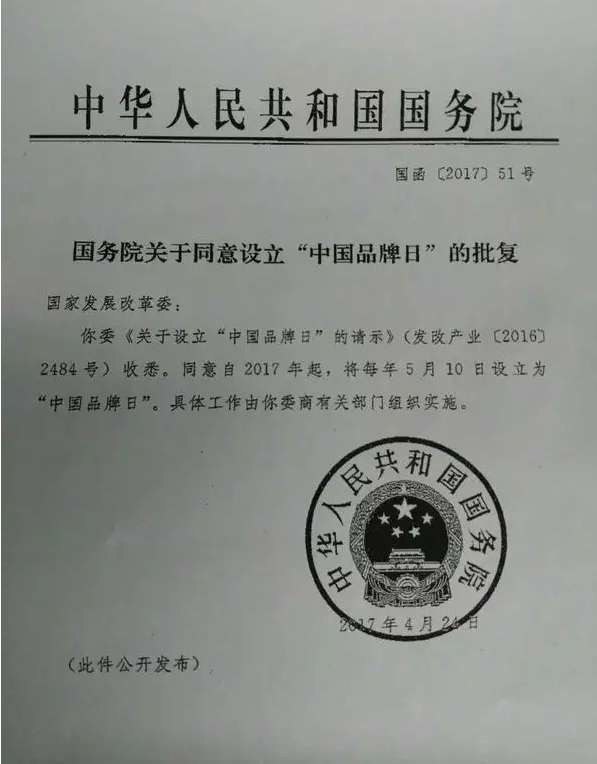 5月2日,國(guó)務(wù)院辦公廳批復(fù)同意設(shè)立“中國(guó)品牌日”。批復(fù)稱,同意自2017年起,將每年5月10日設(shè)立為“中國(guó)品牌日”,具體工作由國(guó)家發(fā)改委等有關(guān)部門組織實(shí)施。品牌日的設(shè)立,對(duì)于所有的中國(guó)品牌而言,將具有非同凡響、甚至是劃時(shí)代的意義。新政出臺(tái),自主品牌利好“中國(guó)品牌日”的設(shè)立,首先體現(xiàn)國(guó)家對(duì)中國(guó)品牌成長(zhǎng)的重視,同時(shí)也是一件順理成章的事。“中國(guó)品牌日”將鼓勵(lì)中國(guó)品牌積極自主創(chuàng)新、提升產(chǎn)品價(jià)值,有利于樹立...