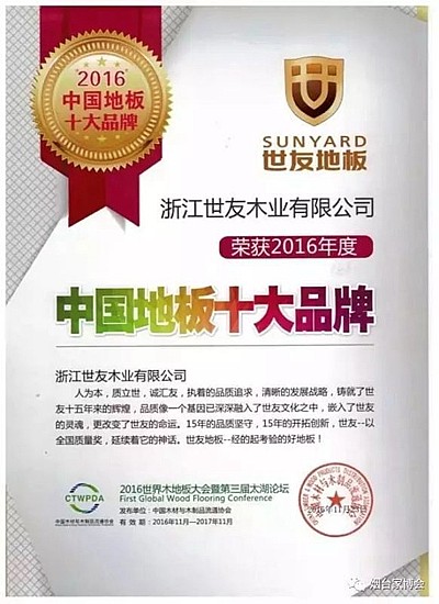6月22日,由世界品牌實(shí)驗(yàn)室主辦的2017年第十四屆“世界品牌大會”在北京隆重舉行,會上揭曉了“中國500最具價(jià)值品牌”榜單。世友專注品質(zhì)16年,以149.05億元的品牌價(jià)值連續(xù)11年蟬聯(lián)“中國500最具價(jià)值品牌”,企業(yè)實(shí)力、品牌價(jià)值受到國際專業(yè)機(jī)構(gòu)官方認(rèn)可,盡展中國家居品牌魅力的同時,成為引領(lǐng)行業(yè)品牌發(fā)展新典范。從2006年至2017年,世友地板連續(xù)11年位列“中國500最具價(jià)值品牌”榜單,這是...