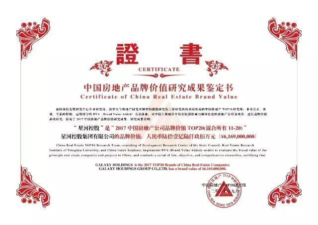 2017年9月14日,由國務院發(fā)展研究中心企業(yè)研究所、清華大學房地產(chǎn)研究所和中國指數(shù)研究院三家研究機構(gòu)共同舉辦的“2017中國房地產(chǎn)品牌價值研究成果發(fā)布會暨第十三屆中國房地產(chǎn)品牌發(fā)展高峰論壇”在北京雁棲湖國際會議中心召開。星河控股憑借卓越品質(zhì)及雄厚功底,榮獲“2017中國房地產(chǎn)公司品牌價值TOP20(混合所有)”、“2017年中國房地產(chǎn)公司新銳品牌價值TOP10”。星河控股集團2017中國房地產(chǎn)公...