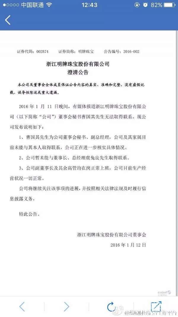 北京商報訊(記者董亮)2015年、2016年凈利潤連續(xù)下滑的明牌珠寶(002574,股吧)(002574),最新曬出的今年一季報業(yè)績答卷仍然不理想,公司在今年一季度出現(xiàn)營收、凈利潤雙下滑的情形。尤其在籌劃重組無果的情況下,明牌珠寶何時能夠扭轉(zhuǎn)業(yè)績頹勢頗為引人關(guān)注。4月24日,明牌珠寶披露的2017年一季報顯示,公司在今年一季度實現(xiàn)營業(yè)收入約11.14億元,同比下滑12.87%,對應(yīng)實現(xiàn)歸屬于上市公...
