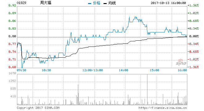 周大福首季港澳同店銷售增5%獲中金升目標 現(xiàn)升2%