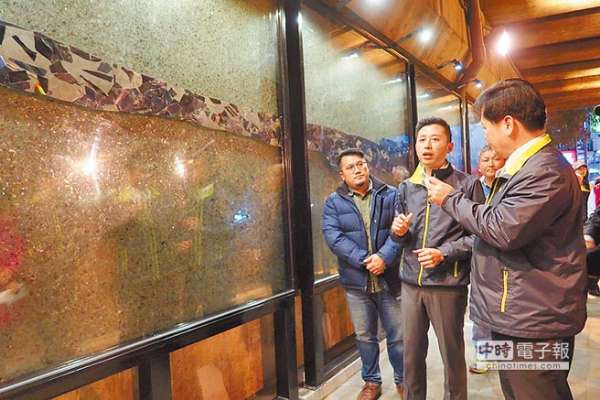 新竹市高速公路光復(fù)路段橋下,兩側(cè)設(shè)有玻璃裝置藝術(shù),市長(zhǎng)林智堅(jiān)(右二)日前往現(xiàn)勘,盼點(diǎn)亮暗角,為用路人帶來(lái)全新感受。(郭芝函攝)新竹市光復(fù)路高速公路橋下變美了!市府利用回收玻璃、廢棄晶圓板,將原本橋下涵洞化身晶瑩閃爍的「琉璃礦脈牆」、「晶圓河流牆」,融入新竹市玻璃、科技產(chǎn)業(yè),不僅發(fā)揚(yáng)在地產(chǎn)業(yè)、工藝,並兼具美感與飲水思源、回收再生等人文關(guān)懷,帶給民眾更多美學(xué)感受。市府投入逾344萬(wàn),邀請(qǐng)?jiān)O(shè)計(jì)師羅傑,以...