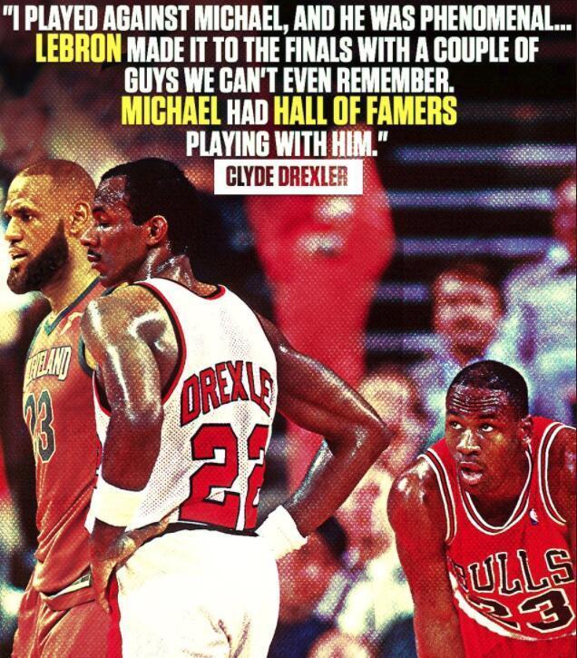 詹姆斯自2003年進(jìn)入聯(lián)盟之后,就一直被拿來(lái)和喬丹比較,一度被認(rèn)為是下一個(gè)喬丹。十多年過(guò)去了,關(guān)于他和喬丹的比較仍然繼續(xù)著,盡管詹姆斯曾經(jīng)說(shuō)過(guò)“不做下一個(gè)誰(shuí)”那樣經(jīng)典的廣告語(yǔ)也依然沒(méi)有改變。火箭名宿“滑翔機(jī)”德雷克斯勒是喬丹時(shí)代公認(rèn)第二好的得分后衛(wèi),在談及老對(duì)手和詹姆斯時(shí)卻不那么客觀地說(shuō):“我跟邁克爾交手過(guò),他是現(xiàn)象級(jí)的。我無(wú)話可說(shuō),我愛(ài)這家伙。邁克爾統(tǒng)治了他的時(shí)代,勒布朗統(tǒng)治了自己的時(shí)代。我不喜...