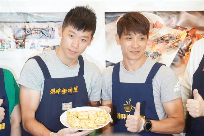 世大運金牌得主李智凱(左)與教練林育信(右)日前出席高雄長庚湖畔咖啡屋公益代言,讓今年月餅禮盒翻倍賣,業績破56萬元。(柯宗緯攝)世大運金牌得主李智凱(中)日前出席高雄長庚湖畔咖啡屋公益代言,讓今年月餅禮盒翻倍賣,業績破56萬元。(柯宗緯攝)高雄長庚醫院附設「湖畔咖啡屋」庇護工場,今年邀請世大運金牌得主李智凱代言,受到「名人牌」加持業績翻倍,從去年23.5萬元,飆升到56萬元,成長幅度驚人。負責人...