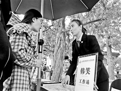 \u00A0\u00A0\u00A0\u00A0本報訊(記者王斌)“我們現在所處的地點是東宮門,建議您進園以后先去仁壽殿,這是過去皇帝辦公的地方,然后參觀帝后生活居住區——玉蘭堂、樂壽堂等區域。接著往西走,就能看見長廊,那里是欣賞昆明湖視野最好的地方……”昨天上午,在頤和園東宮門內首次設立了“韓笑工作站”,由韓笑牽頭,為游客提供義務咨詢與外語幫助。北京青年報記者獲悉,韓笑不僅是頤和園的金牌講解員,...