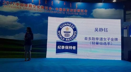 她被稱為“SuperKicker”、她是兩屆奧運會跆拳道冠軍、她還是跆拳道運動史上首位“全滿貫”選手。這些頭銜似乎已足夠樹立她在世界跆拳道領域的霸主地位,但就在今天,她又實現了一項跆拳道人一直在渴求的突破--“世界紀錄”!2017年9月24號下午,在內蒙古包頭舉行的2017中國體育文化?體育旅游博覽會現場,吉尼斯世界紀錄大中華區總裁羅文先生向中國跆拳道女子運動員吳靜鈺頒發了“最多跆拳道女子金牌(輕...