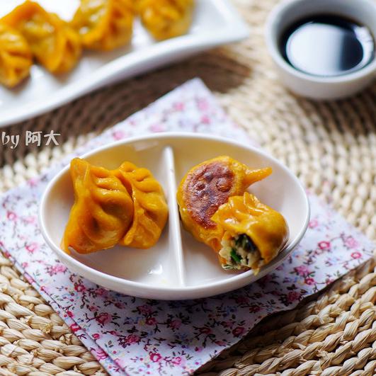 金牌煎餃阿大^.^,2015-12-17這個金牌煎餃是在電視節目上看到的,一直記在小本子里,今天終于有時間來如法炮制一把了,材料我們這邊都有賣的,而且我們當地這邊包餃子也經常放荸薺里面做成餡。這款餃子有幾個特點:一是用南瓜和面,面皮軟和勁道,二餡料很豐富,完全不油膩,三、先蒸后煎,焦香可口。說了這么多,我只想表達真的很好吃,不愧名為金牌煎餃!小貼士:1.用的熟南瓜泥和面,南瓜要選那種老南瓜。2.南...