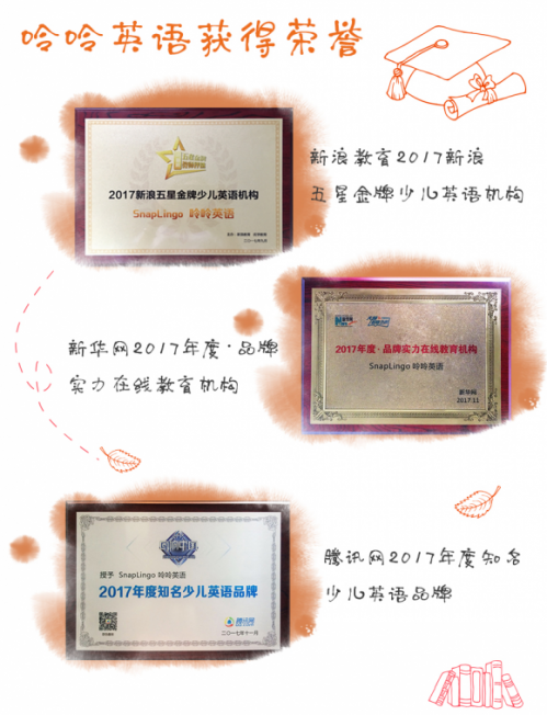 2017年,Snaplingo呤呤英語憑借在在線少兒英語領域的突出成績,在教育屆各大頒獎典禮上成為座上賓,不僅囊括了“五星金牌少兒英語機構”,騰訊網教育年度總評選“2017年度知名少兒英語品牌獎”,“2017年度知名少兒英語品牌獎”等教育行業(yè)的各大權威獎項。不僅在行業(yè)中喜報頻出,更是在創(chuàng)新能力方面有很大的突破,收獲了更多國內家長的擁護,是很多思想前沿家長的幫助孩子提供英語口語的首選。呤呤英語最早成...