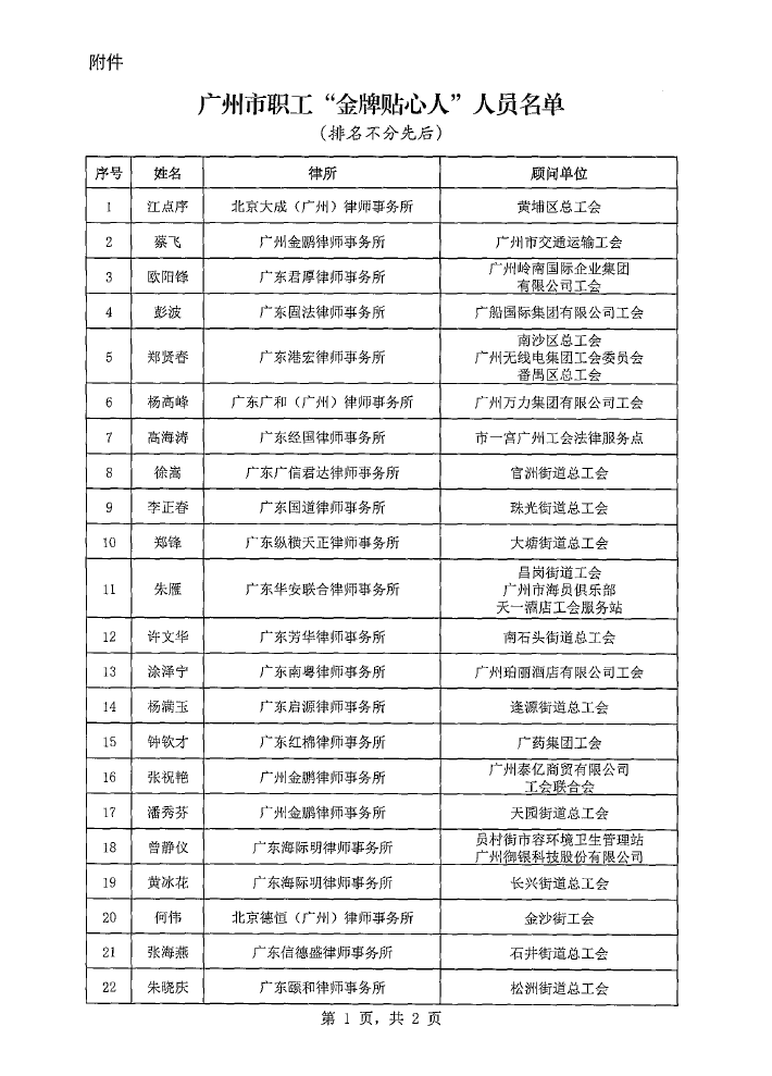 為進一步加強廣州律師在維護職工權益和社會穩(wěn)定中的作用,我局充分發(fā)揮職能作用,全力協(xié)助我市工會組織為職工提供法律服務和支持。在廣州市總工會組織開展的職工“金牌貼心人”推薦活動中,有30位廣州律師上榜(名單附后)。在此,衷心祝賀獲獎律師,并感謝社會各界對廣州律師的認可和厚愛,希望受獎律師珍惜榮譽,不斷進步,發(fā)揮模范帶頭作用,爭取更大光榮。全系統(tǒng)各單位(部門)要以先進為榜樣,牢記宗旨,立足崗位,真抓實干...