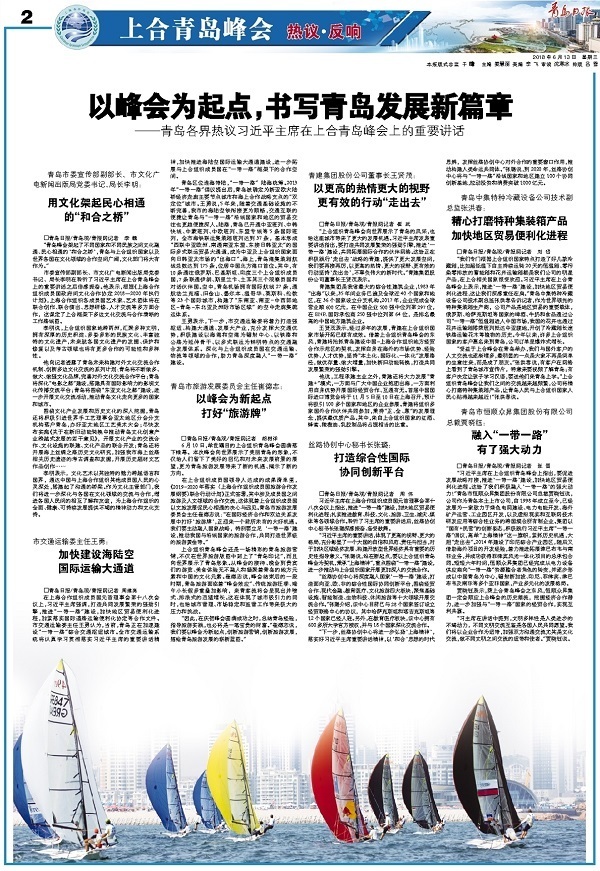 半島全媒體記者吳?報道▲6月12日,幾位游客在五四廣場合影留念,她們專程從西海岸新區(qū)趕過來看看上合峰會帶來的“新氣象”。半島全媒體記者肖玲玲李曉哲劉笑笑徐杰從黃浦江畔到黃海之濱,上海合作組織有了“新地標”――青島。“上合峰會是我們共同的期待。”在峰會開始前,青島市民已真切感受到了這座城市的蛻變:霓虹燈營造的夜景美輪美奐,路邊的綠雕、花雕色彩紛呈流光溢彩……呈現(xiàn)出一座魅力十足、世界矚目的城市。本次峰...
