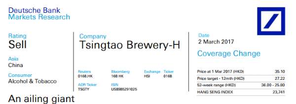 德銀: 青島啤酒(00168)市場份額將持續(xù)下滑 恢復“賣出“評級