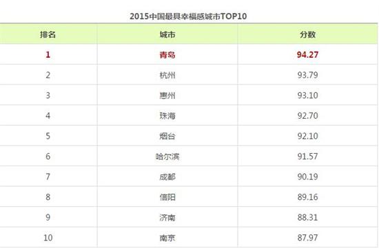 2015中國城市排行 青島大亮!