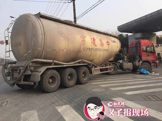 滬龍吳路轉(zhuǎn)彎槽罐車碾壓騎車人致死(組圖)