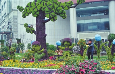 昨天上午,在杭州市區(qū)西湖大道延安南路口,一位工人正在為一個巨型立體花壇安放“歡樂鳥”。據(jù)工人們介紹,這組美麗的花壇名為“歡樂時光”,到了夜晚還會呈現(xiàn)出流光溢彩的美景,是專門為迎接今年春節(jié)搭建的,寓意大家共度美好的“歡樂時光”。記者周金友攝影報道...