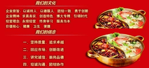 “紅紅串串香”根據(jù)麻辣燙古有的傳統(tǒng)做法,配合如今十幾種精心調(diào)配的中草藥鍋底配方、工藝流程,采用含有現(xiàn)代生物科技的提煉技術:以雞骨、豬骨、牛骨以及蘑菇等為原料,提取出更高純度(比味精鮮度高出25倍、比雞精高出15倍)的純動植物綠色調(diào)味品,且充分保留了骨肉特有的高蛋白、鈣的營養(yǎng)成分,及蛋白質(zhì)、肽等的原汁原味。在選料方面,“紅紅串串香”注重豐富新鮮,四季食物原料均可入鍋,如各種肉類、禽類、水產(chǎn)品、時令蔬菜、干鮮菌果,營養(yǎng)全面,均為人體所必需。一夾一涮,便可食用,保留了大部分營養(yǎng)素,既鮮嫩可口,又有益于健康。“各取腹所需,各吃口所長”。辣而不躁,香而不膩,即燙即食,四季皆宜。“紅紅串串香”繼承了傳統(tǒng)小吃的精 髓,把街頭小吃搬入舒適的店堂,讓更多的人分享其中的美味。