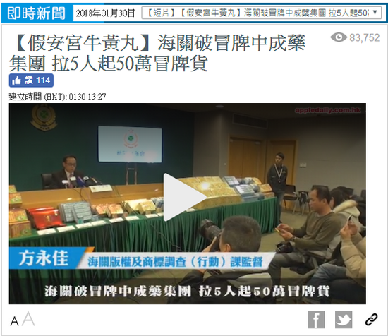 提到安宮牛黃丸,很多人都知道它是享負盛名的中醫(yī)急癥用藥,急救效果毋庸置疑。市場上,生產(chǎn)安宮牛黃丸的品牌眾多,配方與質(zhì)量參差不齊,甚至還出現(xiàn)了很多假貨、高價回收的現(xiàn)象。近日,香港海關(guān)搗破一個貯存及分銷懷疑冒牌中成藥集團。行動中,海關(guān)在兩間零售店鋪以及一個貯存中心內(nèi)檢獲約3900盒(14萬粒)及500樽(28公升)懷疑冒牌中成藥,估計市值約50萬元。據(jù)記者現(xiàn)場所見,海關(guān)檢獲的冒牌中成藥,部分是冒認國貨...