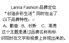 Lanna Fashion 的品牌是我們信譽的長期積累,標志著我們的產(chǎn)品創(chuàng)新、服務質(zhì)量在用戶中有一定的優(yōu)勢,為此,我們所有的相關企業(yè)、加盟商要堅持保證我們的品牌優(yōu)勢。
