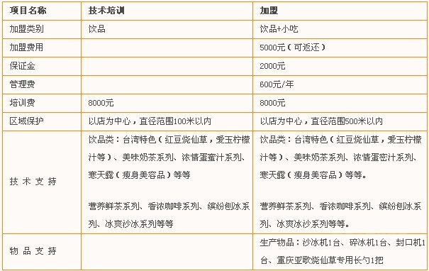 重慶亞歌創(chuàng)業(yè)技術咨詢中心,憑借自身敏銳的國際飲食潮流預判力、項目運營體系和科學的市場營銷模式,長期領導著國內(nèi)飲食投資潮流,創(chuàng)新推出高品質飲品加盟項目:“重慶亞歌”,其主要原材料和技術人員均來自臺灣,在保證制作出優(yōu)良飲品的同時,根據(jù)季節(jié)的不同不斷開發(fā)新的特色飲品品種。