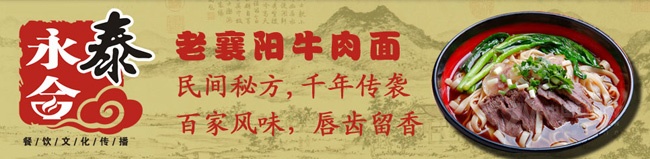 “永合泰老襄陽牛肉面”由回族人馬和瑞于清朝康熙元年(公元1662年)創(chuàng)辦,至今已有三百多年歷史。馬和瑞生有三子,馬永生、馬合仁、馬德泰,為保持品味獨具特色和正宗,馬和瑞一直讓三個兒子合伙經(jīng)營,并取名為“永合泰”,希望三個兒子團結(jié)一心,發(fā)揚壯大“永和泰”。初時永合泰以制作五香鹵羊肉和鹵牛肉著稱。由于選料認真,制作精細,馬家老鋪制成的五香鹵羊肉和鹵牛肉肥而不膩,瘦而不柴,不腥不膻,香味純正,遠近聞名。