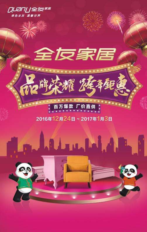值此年終來(lái)臨之際,全友家居特推出“品牌榮耀,跨年鉅惠”大型促銷活動(dòng),為廣大置家人士精心準(zhǔn)備了一場(chǎng)愛家的饕餮盛惠,2016年12月24日至2017年1月3日,全友家居在全國(guó)范圍內(nèi)推出多款正品家具聯(lián)袂鉅惠,開啟全友家居2016年終促銷盛宴。據(jù)了解,相比以往的促銷活動(dòng),此次全友家居將更加完善經(jīng)營(yíng)理念、增強(qiáng)服務(wù)特色及加大優(yōu)惠力度。除了超低價(jià)、抽獎(jiǎng)等活動(dòng),還有買家具送家具、10元等于3000元、開單即送禮的...