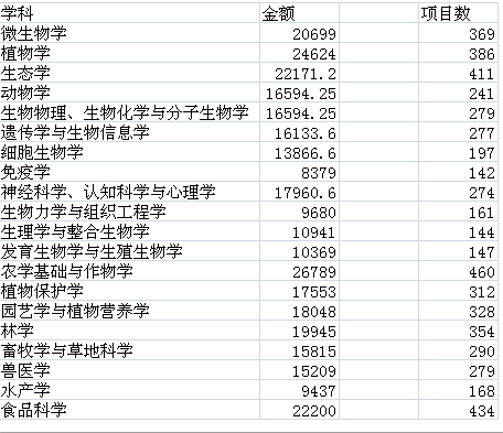 2014國家自然科學基金統(tǒng)計之生命科學各學科獲批數(shù)目及金額