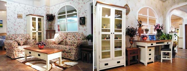2、細節(jié)處理:精細和不規(guī)則的倒角磨邊式處理在無形中增添了家具的圓潤感和靈動性。略顯陳舊的邊角處理,充滿了含蓄的美和演繹著復古的經典。加上碎花配飾,給您一種溫馨浪漫,整潔明亮的感覺。