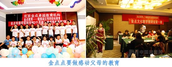 金點(diǎn)卓越教育機(jī)構(gòu)是目前國內(nèi)規(guī)模較大、具有一定國際影響力和專業(yè)知名度的少兒特色教育機(jī)構(gòu)。“金點(diǎn)點(diǎn)”系列課程正全面走向多元化,以金點(diǎn)教育——“做感動(dòng)父母的輕松教育”為宗旨,特別創(chuàng)建了“金點(diǎn)點(diǎn)”品牌:4~12歲兒童多種技能與課程的培訓(xùn)機(jī)構(gòu)。