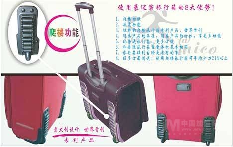 目前市場上沒有此類產(chǎn)品,豪邁客Grande Amico爬樓拉桿箱的問世,填補了這一空白。我們自信,我們的爬樓旅行箱,拉桿箱。將引領(lǐng)整個拉桿箱產(chǎn)業(yè)的第三次功能革命。