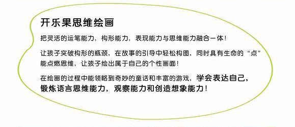 以繪畫為載體,在游戲和故事中挖掘孩子的興趣,開發(fā)和提高孩子的創(chuàng)造力和想象力。左右腦共同運(yùn)作,呼吁全腦思維。定點構(gòu)圖法配以完善的系統(tǒng)教材和課程體系突破孩子面對一張白紙無從下手的瓶頸。無論有無基礎(chǔ),均可落筆生花,鼓勵孩子講述,做到“畫中有話”。
