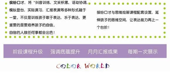開樂果繽紛口才,將“糾音訓(xùn)練、文才積累、語動協(xié)調(diào)、模擬登臺、實際演習(xí)、匯報表演”等多種形式溶于一堂,不僅是訓(xùn)練孩子敢于表達(dá)、樂于表達(dá),更重要的是培養(yǎng)孩子的自信!自信的人做任何事情都會出色。
