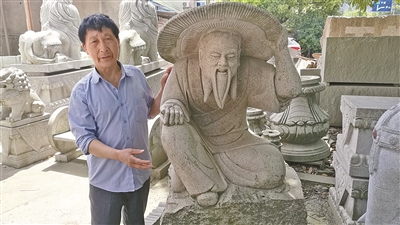 金星喬展示他創(chuàng)作的《垂釣翁》石雕作品。(記者余建文攝)漢白玉石雕《新布袋和尚》。\u00A0\u00A0\u00A0\u00A0本報記者\u00A0余建文\u00A0\u00A0\u00A0\u00A0叮叮當當?shù)那描徛曋校植诘氖瘔K變得立體有神,甚至成為一件藝術品。\u00A0\u00A0\u00A0\u00A0石匠,是人類歷史上最古老的職業(yè)之一。遠古時期磨石制矢、鑿石建屋的先人,可視作石匠的祖先...