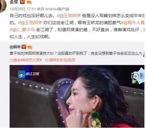 近日,一段劉燁章子怡在節(jié)目現(xiàn)場翻臉,引發(fā)網(wǎng)友熱議。網(wǎng)友@王愷同學轉(zhuǎn)發(fā)該片段并寫道:“你們這些老江湖,哪有玉嬌龍的滿腔豪氣!”“倒是沒人寫篇劉燁怎么變成中年油膩男的。”金星稍后轉(zhuǎn)發(fā)此網(wǎng)友微博表示:“自己的戲也沒好哪兒去。”對于金星此話,引起了網(wǎng)友猜測,認為金星是在懟章子怡,但也有網(wǎng)友表示稱:“為什么我覺得是說愷?”隨后,原來是網(wǎng)友們瞎猜,金星為此網(wǎng)友點贊,并稱:“是啊!那幫傻瓜瞎猜什么呀?!”原標題...