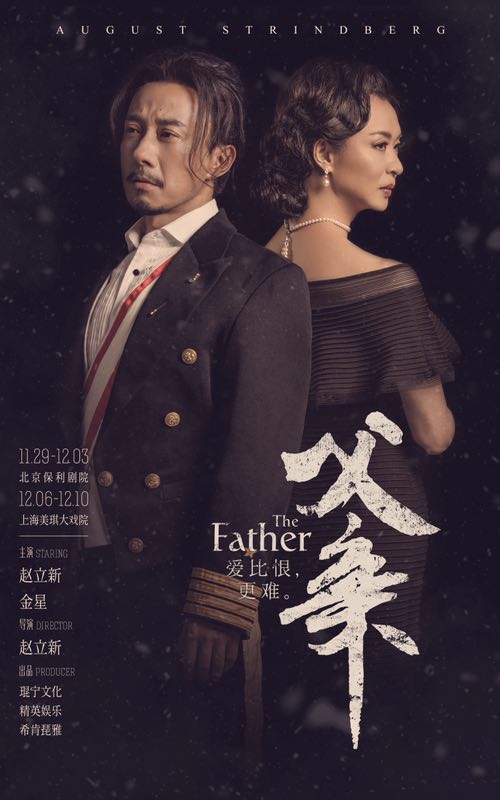 年度舞臺力作!由琨寧文化、精英娛樂、希肯琵雅共同投資,趙立新導演,趙立新和金星首度合作聯袂主演的瑞典現代文學奠基人、世界現代戲劇之父奧古斯特·斯特林堡名劇《父親》,將于11月29日至12月3日在北京保利劇院首演,12月6日至12月10日在上海美琪大戲院上演。即將開票,敬請期待!...