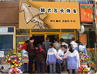 在韓國(guó)首都首爾市的明洞、梨花大學(xué)、高速路服務(wù)區(qū)等許多地方都可以看到石頭烤魚生意火的不得了是韓國(guó)時(shí)尚的街頭小吃。