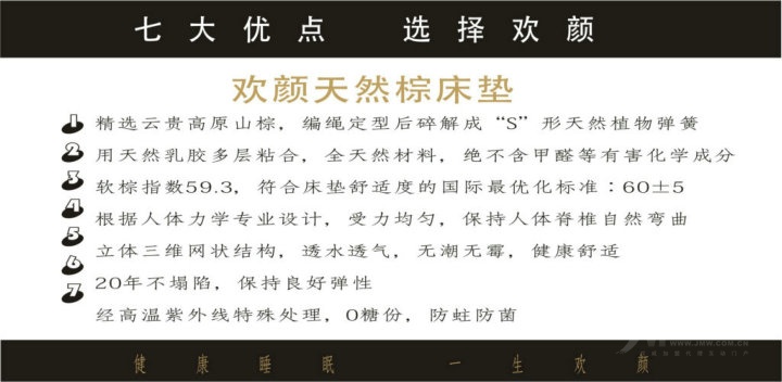 1.綠色時尚:天然棕絲、天然乳膠,無甲醛等致癌化學(xué)成分,綠色無憂。