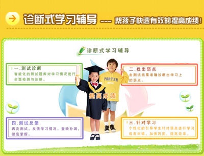 小狀元診斷式學(xué)習(xí)輔導(dǎo),以科學(xué)的學(xué)習(xí)輔導(dǎo)方法,通過測試診斷——找出弱點(diǎn)——針對學(xué)習(xí)——測試反饋,準(zhǔn)確的找到孩子學(xué)習(xí)的弱點(diǎn),有針對性的指導(dǎo)學(xué)習(xí),從而能非常有效的提高學(xué)習(xí)成績!