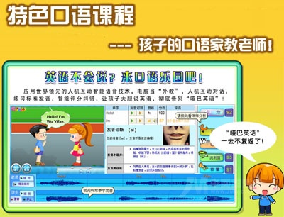 我們設(shè)有國內(nèi)英語口語提高欄目----口語樂園,人機(jī)智能對話,打分糾錯,孩子用了它,就像是把外語教師請回家,讓孩子說一口流利的英語,徹底告別啞巴英語!