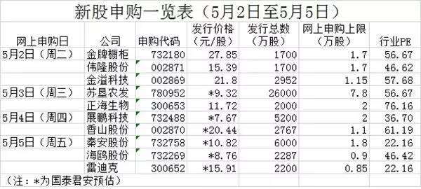 新股申購指南:金牌廚柜等三新股5月2日申購