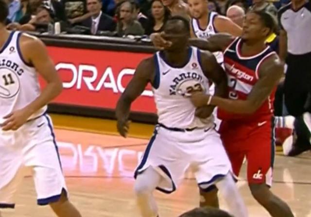 勇士今天主場上演逆轉大戲,但是這已經不是今天的主要話題了,今天最勁爆的是比爾和追夢的抱摔。此戰勇士隊的杜蘭特得到全場最高的31分外加11個籃板和6個助攻的數據,帶領勇士翻盤以120比117逆轉奇才。其中庫里得到20分8個助攻,但是最火爆的是奇才的比爾和格林發生一次肢體沖突,沖突從比爾的一記右勾拳開始。兩人在籃底下爭搶籃板卡位時肢體動作過大,比爾卡位不成功,卻順手一個右勾拳打到格林的臉上。大膽!追蛋...