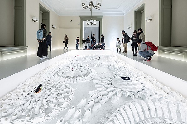 wonderwall的設計師片山正通(masamichikatayama)為紀念耐克經典款氣墊鞋airmax三十周年設計了一個景觀花園,在東京的國家博物館中展出。該設計通過不斷重復的圓形圖案與這款經典鞋款相結合,最終打造出了一個優雅而井然有序的展覽。\u00A0wonderwall與發型化妝師asaminemoto合作,將耐克的一系列白色球鞋以不斷重復的形式呈現在花園中,而真正的全色系airmax...