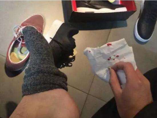 男子去耐克店試鞋不料血染當場!因為鞋子里發現了這個東西(圖)