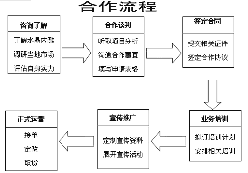“晶生有約水晶內(nèi)雕加盟店”以其巨大的影響力引人注目,顧客只要一見到都感興趣,覺得不可思議,不少單位和個人紛紛要求合作,于是我們便嘗試建立了一些代銷點,而讓我們感到驚奇的是,每一個代銷點都取得了不錯的效果,其中,珠海拱北“生活飾家”是很有名氣的連鎖飾品店,是作為特色項目引進(jìn)的;珠海香洲全盛廣告是一家大型禮品公司,是作為新增項目引進(jìn)的;吉大三山婚紗攝影是專門從事婚紗藝術(shù)照的機構(gòu),引進(jìn)“晶生有約水晶內(nèi)雕”后業(yè)務(wù)額大增……我們分析,“晶生有約水晶內(nèi)雕連鎖店”成功可以歸納為六點: