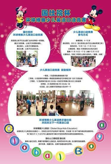 \u00A0\u00A0\u00A0\u00A0\u00A0環(huán)球博雅少兒英語(GlobalBoyaKidsEducation),是全國****少兒英語培訓(xùn)品牌之一,總部設(shè)在北京,在全國70多個城市都設(shè)有加盟學(xué)校,是專門致力于少年兒童英語學(xué)習(xí)能力開發(fā)和培養(yǎng)的全國性連鎖教育機構(gòu)。環(huán)球博雅專注于少兒英語教育領(lǐng)域,并利用世界較大教育出版集團之一-英國麥克米倫公司中國區(qū)**代理商的優(yōu)勢,將歐美課堂的同步教學(xué)...