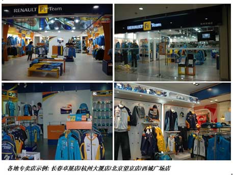 法國(guó)Renault F1 Team貨品分進(jìn)口商品及國(guó)產(chǎn)商品兩大類(lèi)。其中進(jìn)口商品價(jià)格較高,由法國(guó)設(shè)計(jì)并由全球各地加工生產(chǎn),主要為賽車(chē)風(fēng)格的服裝服飾;國(guó)產(chǎn)商品則授權(quán)在中國(guó)生產(chǎn),不僅包括賽車(chē)服裝,也包括可以隨意穿著于各種場(chǎng)合的休閑運(yùn)動(dòng)系列服裝。我們針對(duì)中國(guó)市場(chǎng)的需求開(kāi)發(fā),并為加盟商提供具有競(jìng)爭(zhēng)力的優(yōu)質(zhì)產(chǎn)品及折扣空間。