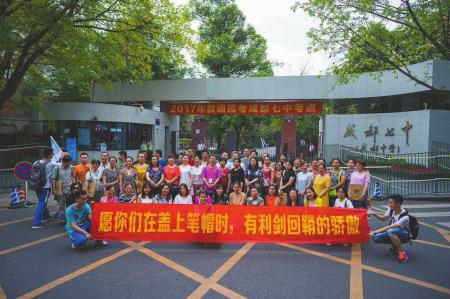 陳中根老師與學生家長為考生助威。這是一個創(chuàng)造了奇跡的高中畢業(yè)班,一個班上50多名學生,有多名同學在高考前就已獲得了保送北大、清華或者降分錄取的資格,目前已經(jīng)跨進北大、清華大門的就有25人左右;此外還有被香港大學和新加坡國立大學錄取的;全省700分以上的考生一共12人,這個班上就出了3人;680分以上的有16人;班上學生平均成績近660分;高考數(shù)學平均成績142;英語平均成績140。這是成都七中高三...
