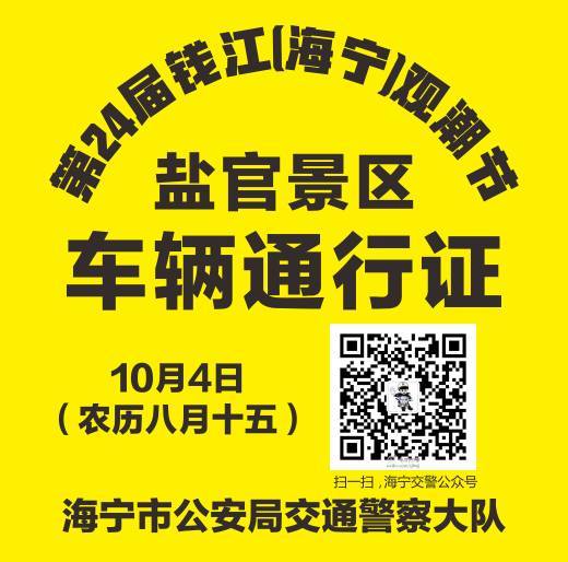 海闊天空浪若雷,錢塘潮涌自天來。國(guó)慶長(zhǎng)假恰逢錢塘潮,想必觀潮勝地一定是人人人的世界。前方高能!\u00A010月4日至10月8日(農(nóng)歷八月十五至八月十九),海寧101省道、桐九線、騎荊線合圍區(qū)域,觀潮車輛(大型客車除外)一律需要憑通行證限量進(jìn)入了!您可在101省道郭鹽線路口、101省道桃翁線路口、G92杭州灣環(huán)線高速鹽官出口、桐九線潮涌路口、騎荊線潮涌路口及騎荊線翁金線路口現(xiàn)場(chǎng)申領(lǐng)通行證。當(dāng)日通行...